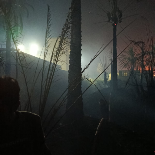 ساندة وتخصصية من السيطرة التامة على الحريق الذي اندلع في احد البساتين يضم (نخيل وحشائش يابسة ) في ،