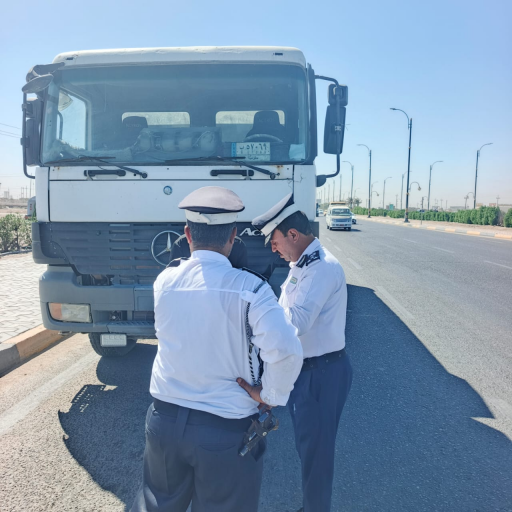 مرور البصرة ضبط وحجز مركبة / نوع خباطة / تناثرت منها مخلفات الاسمنت في تقاطع القبلة