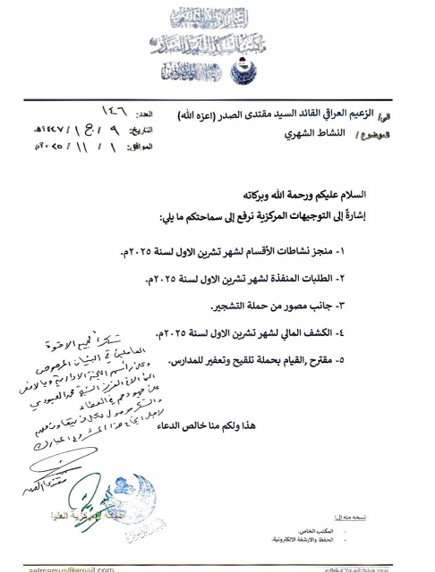 في البنيان المرصوص ووجّه بالقول "نرجو التنسيق مع الجهات المختصة للقيام