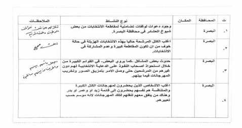 البصرة لدعوتها لوقفات تضامنية لمقاطعة الانتخابات .
