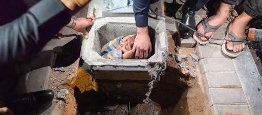 انقاذ طفلة سقطت في احدى الخرسانات الكونكريتية الخاصة بالكيبل الضوئي بالبصرة