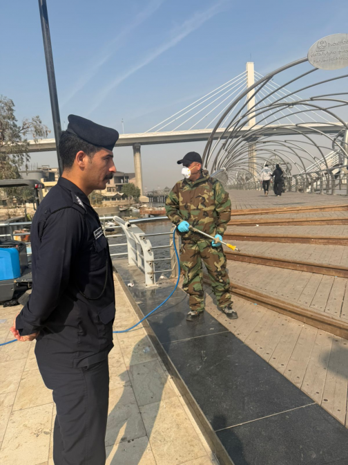 وذكر اعلام المديرية :" استنادا لتوجيهات رئيس مجلس محافظة البصرة وباشراف مباشر من قبل مدير دفاع مدني البصرة العميد مازن محمد لفته ، باشرت مديرتنا بالتنسيق والتعاون مع قسم السلامة التابع لمديرية زراعة المحافظة ، بحملة تطهير وتعقيم الاماكن الذي يرتادها المواطنون وذلك " تحسبا" لتفشي الفايروس والامراض الانتقالية .