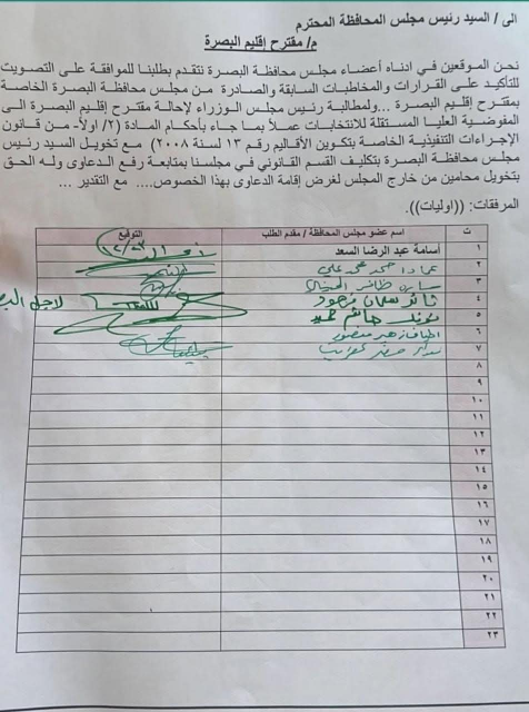 وكان عدد من أعضاء مجلس محافظة البصرة قدموا طلبا رسميا للتصويت على مقترح إقليم البصرة ./ انتهى