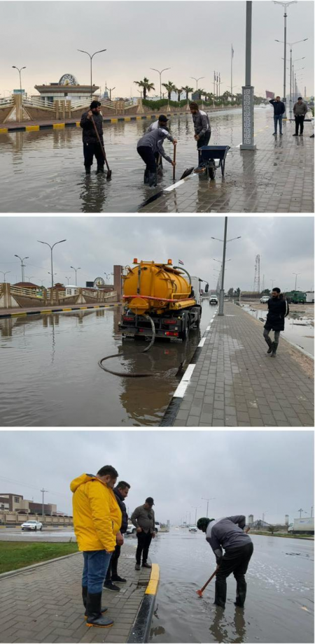 وذكرت المديرية في بيان :" وجّه مدير بلدية البصرة المهندس فراس عبد الخالق عمران الجهدين الآلي والبشري لمديريتنا بسحب مياه الأمطار المتجمعة من شوارع مركز المحافظة، كجهدٍ ساند لمديرية مجاري المحافظة، وذلك لضمان انسيابية الحركة والتخفيف من معاناة المواطنين.