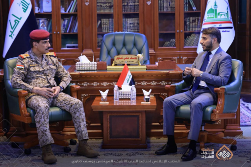 محافظ النجف يبحث مع رئيس اركان الجيش عددا من الملفات المشتركة اهمها توزيع قطع الاراضي لمنتسبي وزارة
