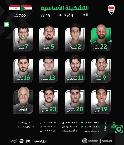تشكيلة منتخبنا الوطني لمواجهة نظيره السوداني في كأس العرب