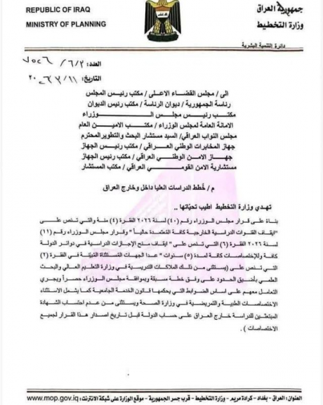 وزارة التخطيط : إيقاف منح إجازات الدراسة خارج العراق لمدة خمس سنوات