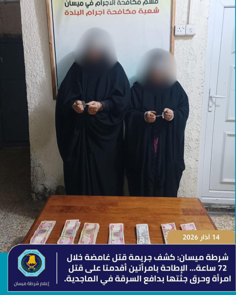خلال ٧٢ ساعة ....شرطة ميسان: تكشف جريمة قتل غامضة و الإطاحة بامرأتين أقدمتا على قتل امرأة وحرق جثتها