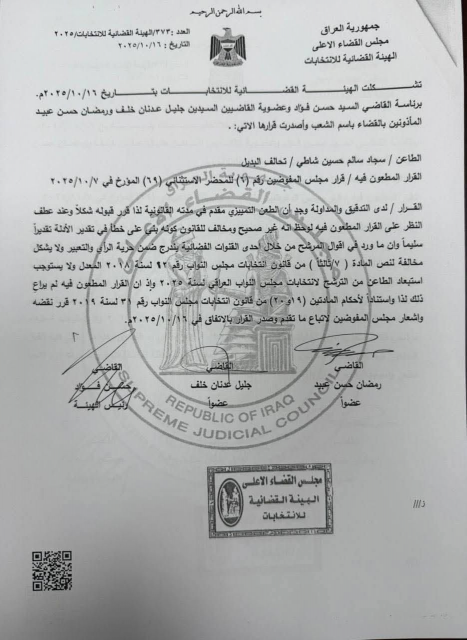 الهيئة القضائية للانتخابات النائب المرشح سجاد سالم ، الى السباق الانتخابي ، بعد