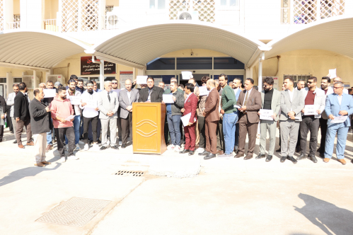 نظم منتسبو المديرية العامة لتربية البصرة من حملة الشهادات العليا الماجستير والدكتوراه وقفة احتجاجية اليوم الاثنين، استنكارا واحتجاجا على قرارات إيقاف المخصصات الجامعية.