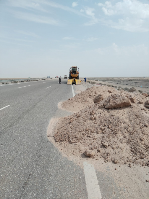 مرور البصرة تنفذ حملة لرفع اكوام رملية من على الطريق السريع